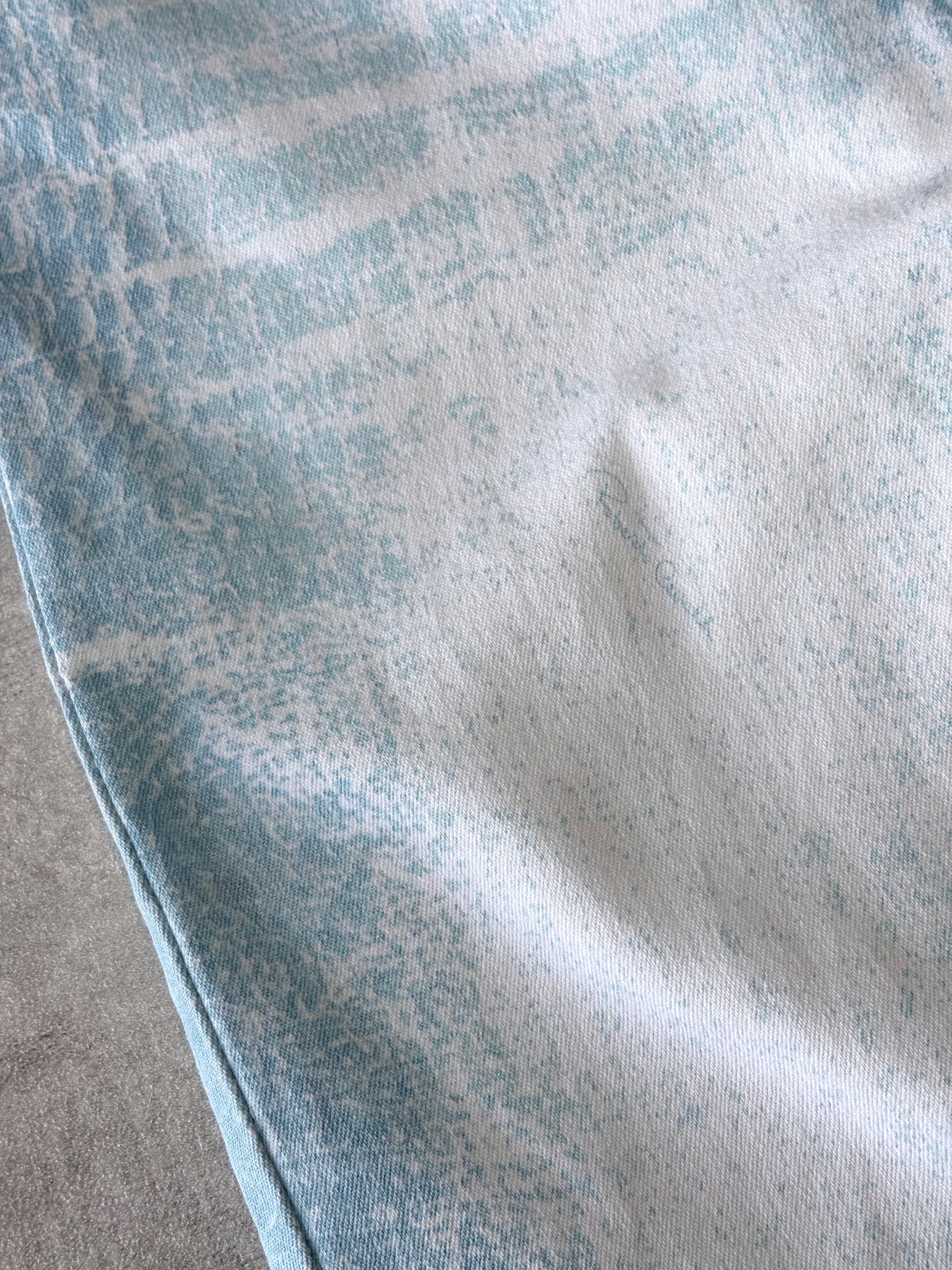 Vintage Roberto Cavalli distressed effect jeans with croc print and gold tone branded hardware. Distressed finish. Straight leg and low waisted fit.
