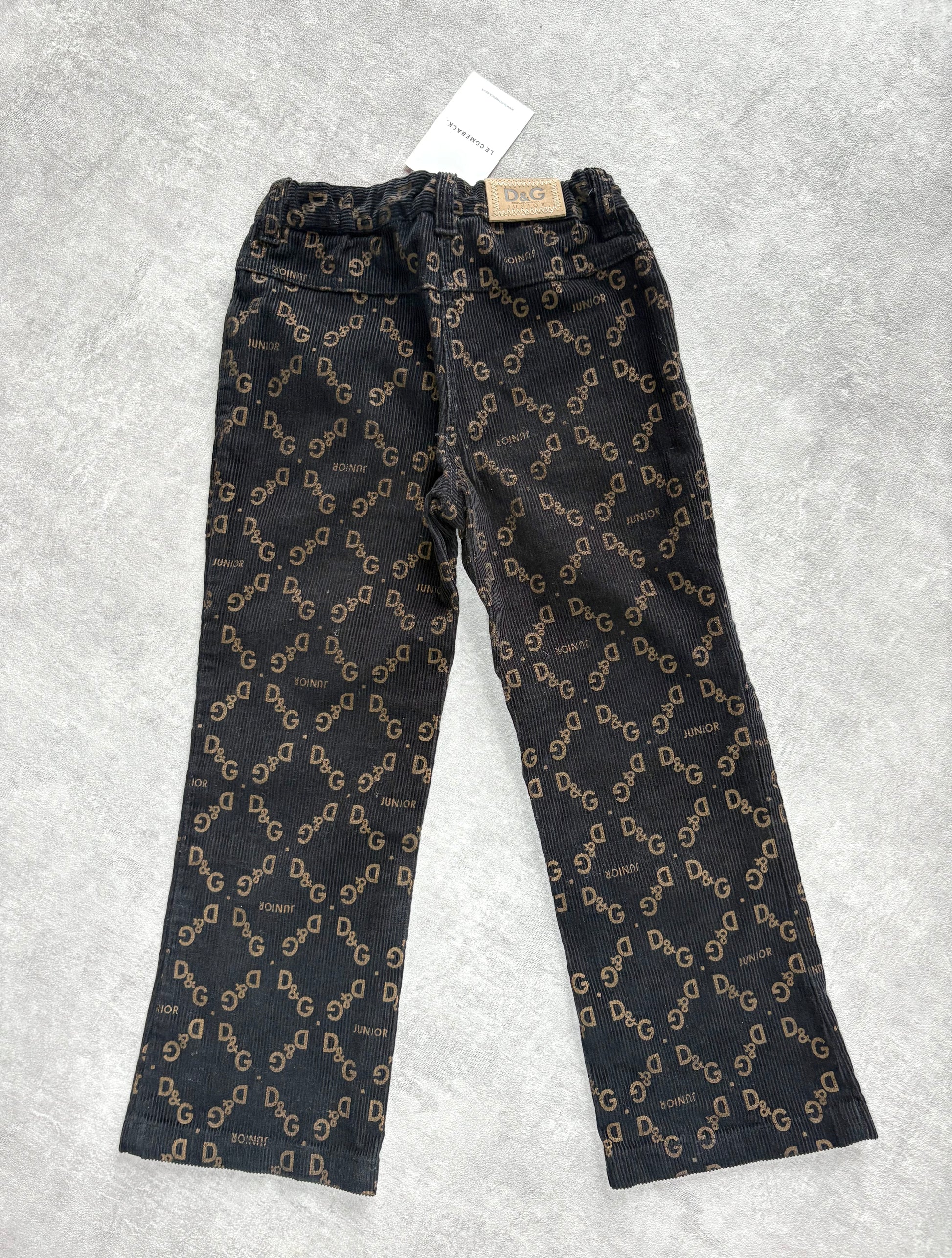 Vintage D&G corduroy trousers with all over logo monogram print. Engraved buttons and logo patch to back. Elasticated waistband.
