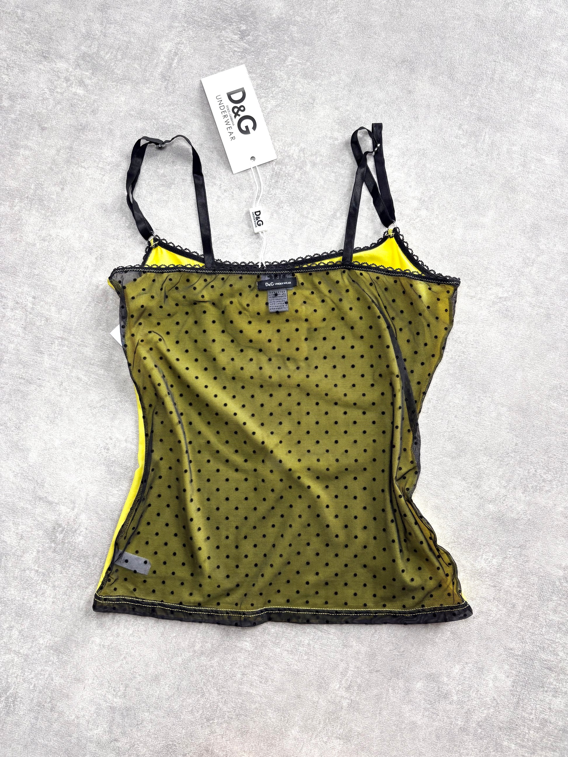 Vintage Dolce & Gabbana underwear line top with front print and sheer mesh back. Super soft stretch fabric. Adjustable straps.
