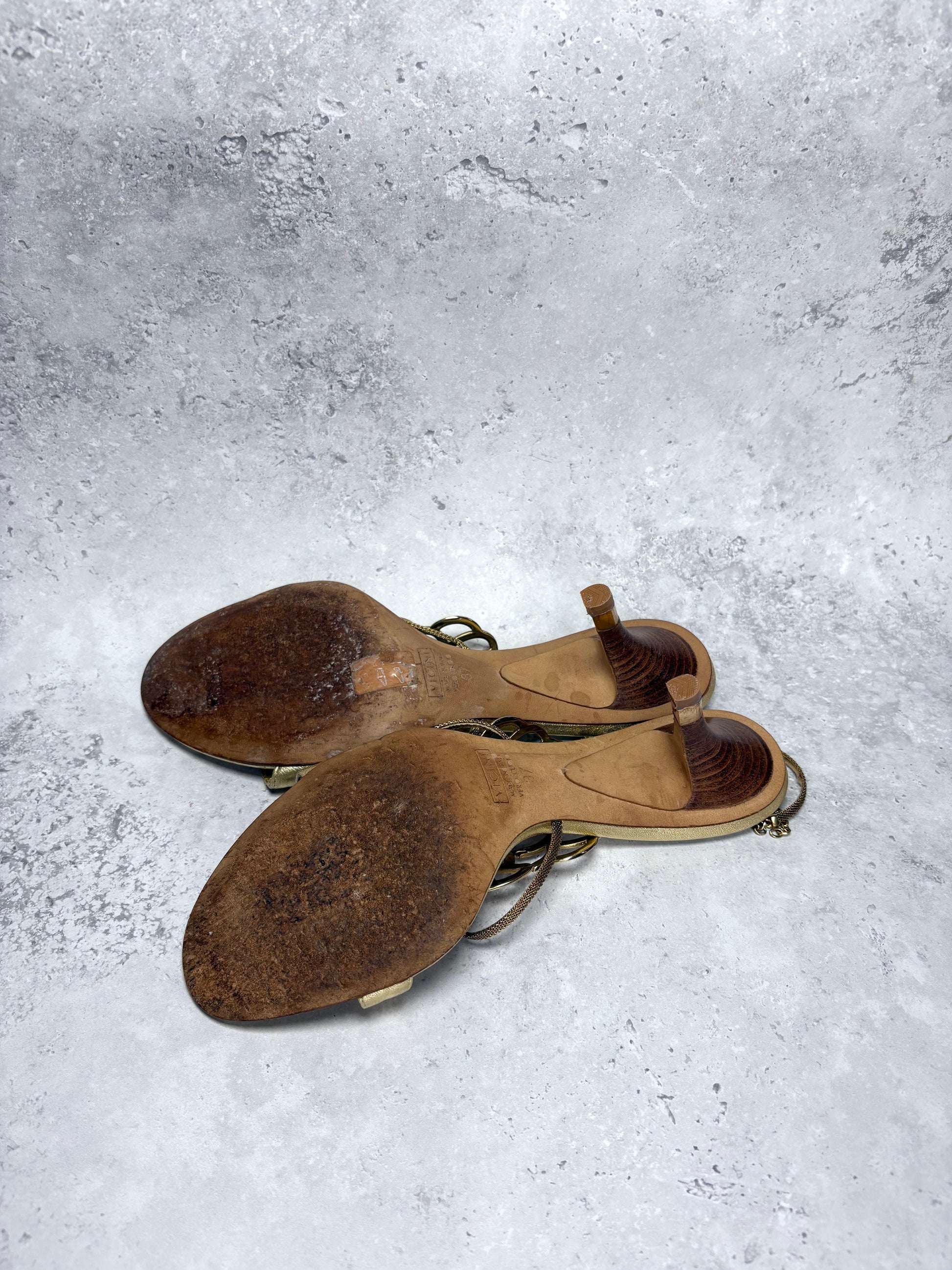 Vintage gold Giuseppe Zanotti strappy heels with metal detail. Chain ankle strap. Leather strap and insoles. Comes with Le Comeback dustbag. Size 37/UK4.