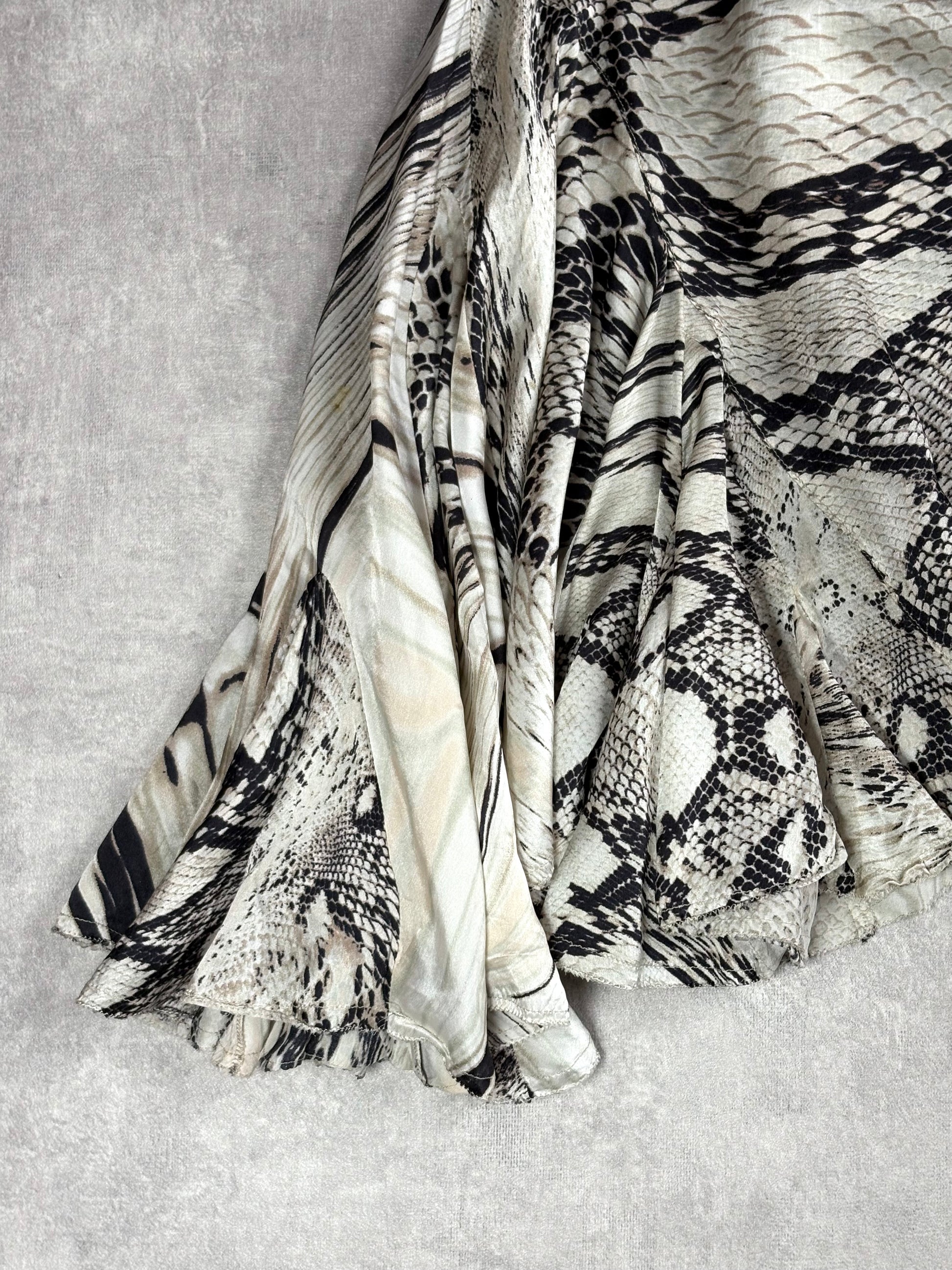 Vintage Just Cavalli snake print mini skirt with asymmetric hem. 100% silk.