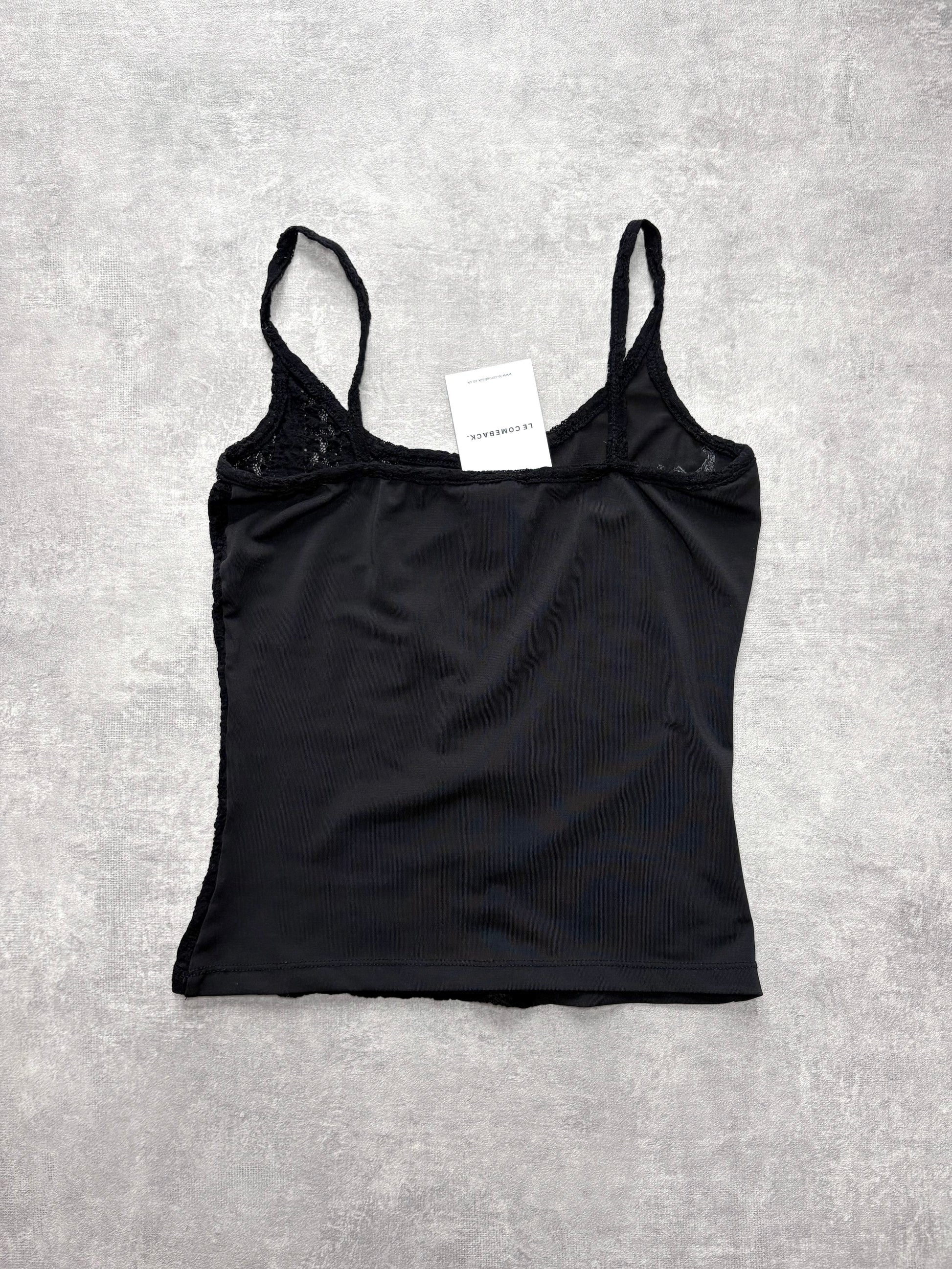 Vintage Versace Jeans Couture cami top. Split front with logo to one side and lace to the other.