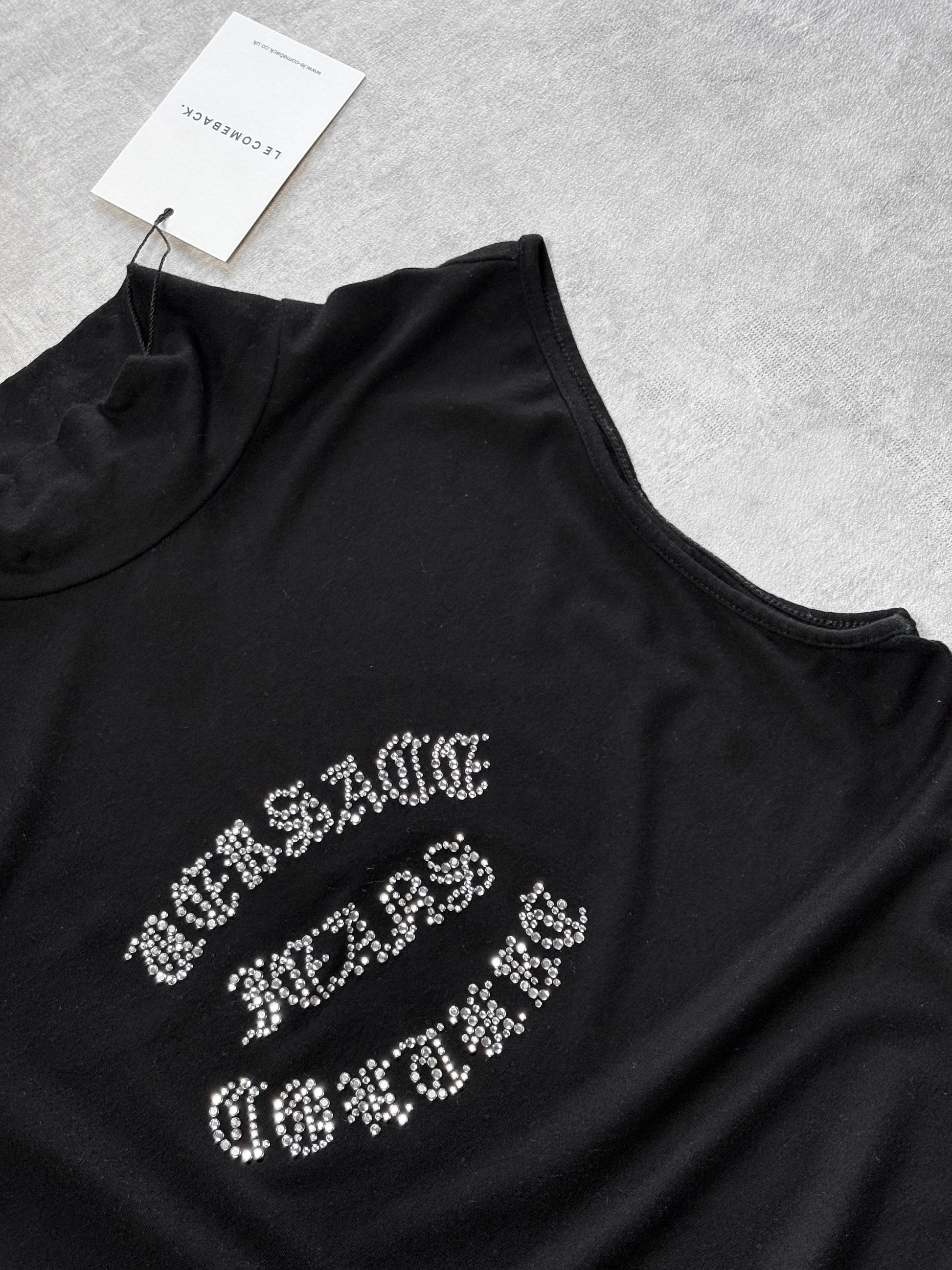 Rare vintage 2001 Versace Jeans Couture high neck top with gothic diamante logo. Stretch fabric.